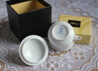 Beautiful cream cup with lid in the decor "Pink Eden" with Butterfly knob on the lid.