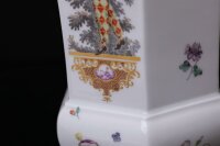 Eine Vase in „Balusterform“, die Form entstand um 1730, Meissen Künstler verzierten die Vase mit Landschafts- und Figurenmalereien und hatten als Vorbild die Motive der Commedia dell“ art. Die Vase ist aus sechs Flächen zusammengesetzten, auf zwei gegenüberliegenden Flächen tänzeln, die Ballerino / Harlekin auf Zehenspitzen.